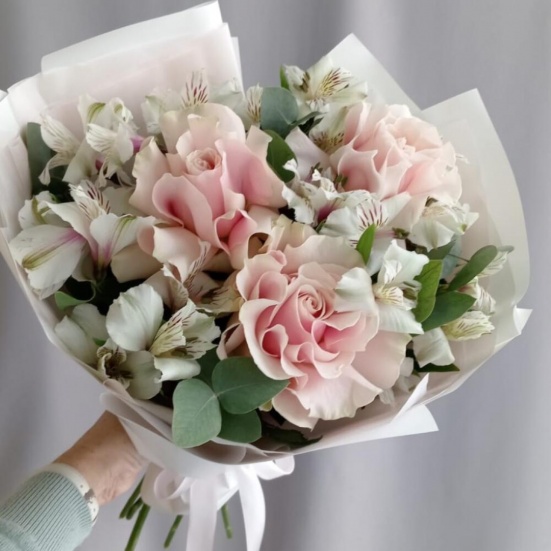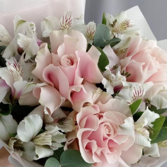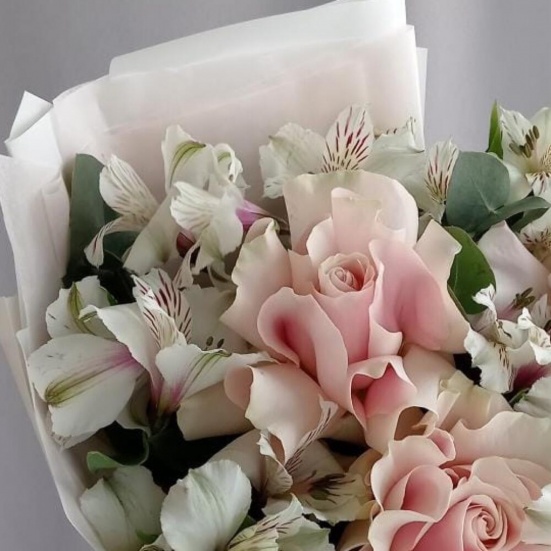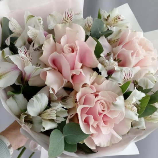 Букет из 3 французских роз и Альстромерии в Набережных Челнах