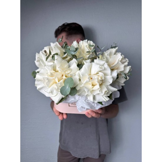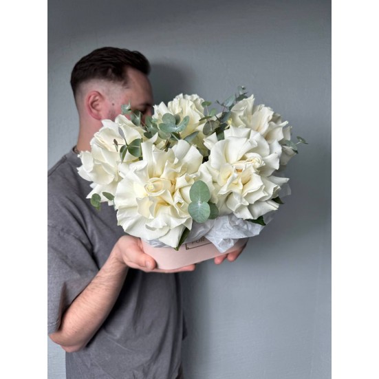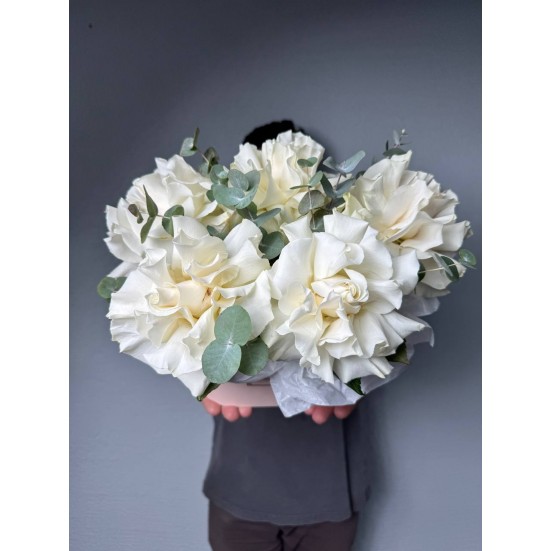 Композиция из белых французских роз и эвкалипта олицетворяет изысканность и утонченность. Нежные лепестки роз создают атмосферу легкости и чистоты, символизируя искренность чувств и чистоту намерений. Эвкалипт добавляет композиции свежесть и природную энергию, подчеркивая гармонию природы. Такое сочетание цветов идеально подходит для выражения нежных эмоций и восхищения красотой окружающего мира.